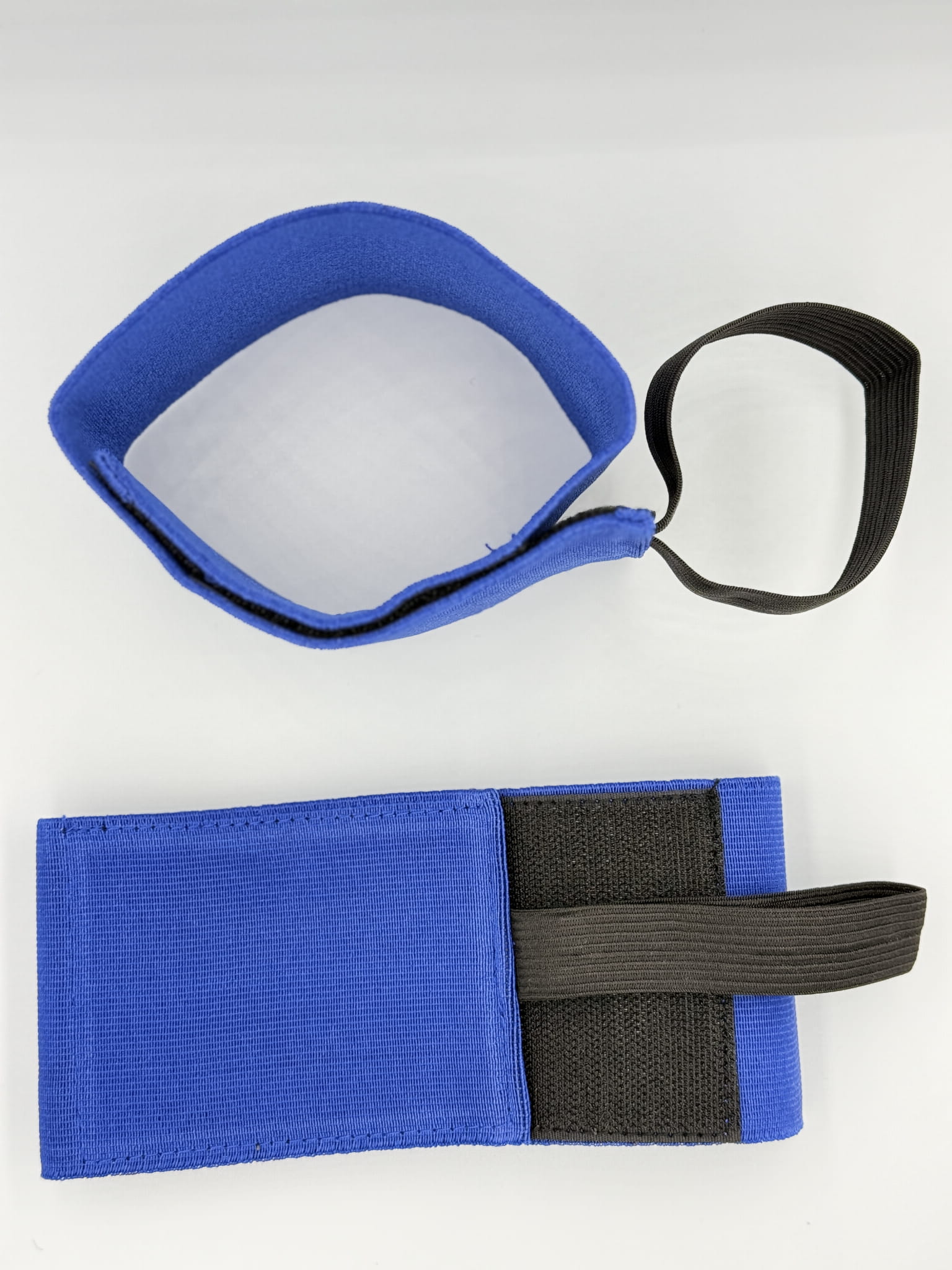 Opaska w kolorze niebieskim, zrobiona z gumy, na końcach znajdziemy szerokie taśmy typu "rzep"